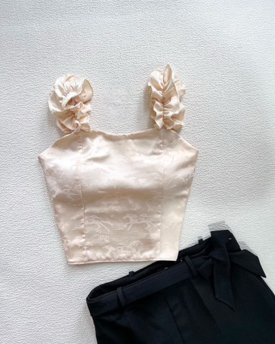 کراپ ساتن کاپدار بند پیله ای زنانه فری سایز