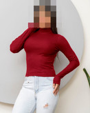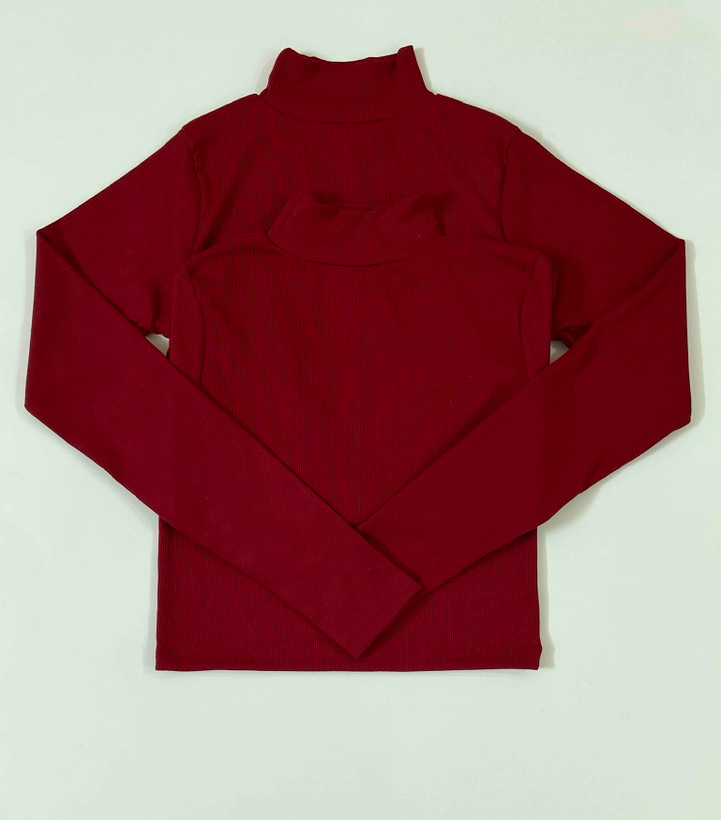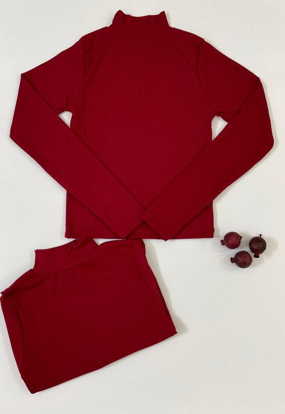 بلوز یقه اسکی زنانه آستین بلند زرشکی کبریتی فری سایز