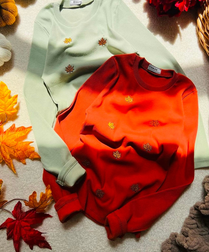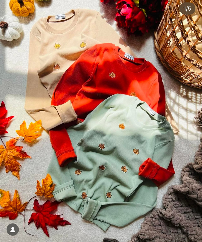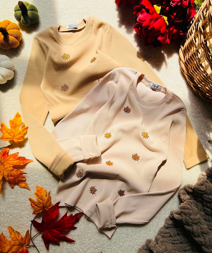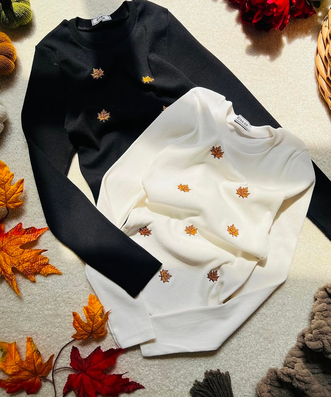 بلوز یقه گرد آستین بلند گلدوزی خزان کبریتی زنانه فری سایز
