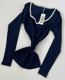 بلوز یقه دلبری آستین بلند کشبافت پنبه زنانه فری سایز