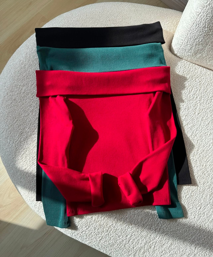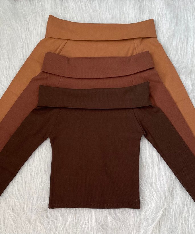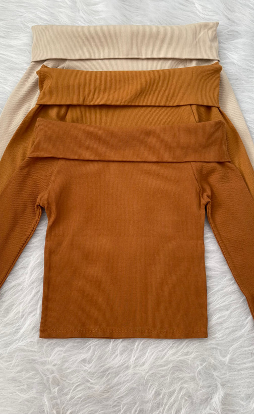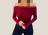 بلوز یقه قایقی آستین بلند کشبافت زنانه فری سایز