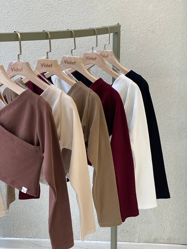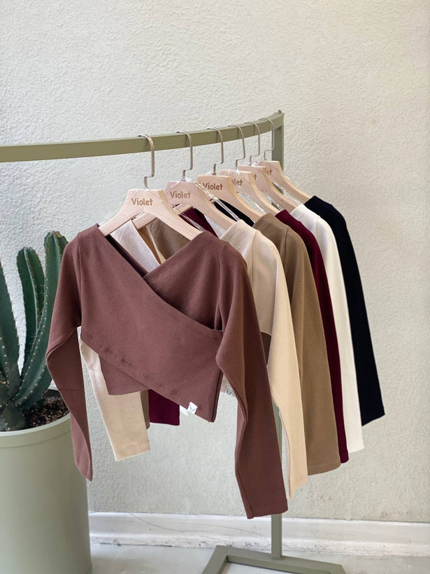 کراپ آستین بلند چپ و راستی کشبافت زنانه فری سایز