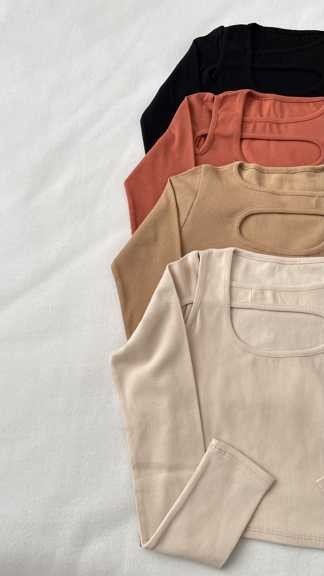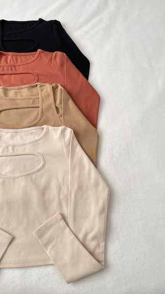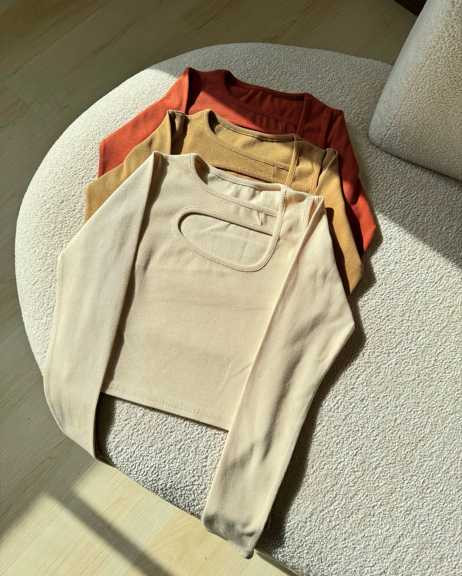 کراپ یقه مارپیچ آستین بلند کشبافت زنانه فری سایز