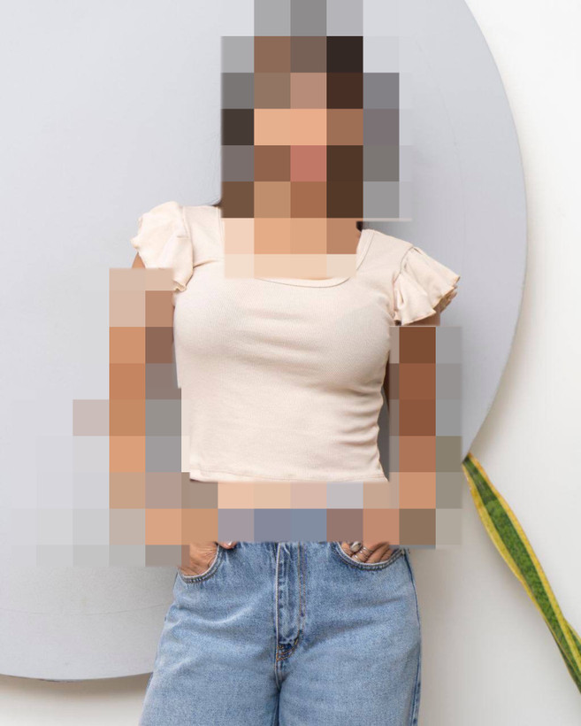 کراپ زنانه یقه خشتی آستین پیله دار کبریتی فری سایز